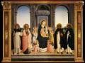 Retable de San Marco, panneau central (1438-40). Ce panneau représente une Vierge à l'Enfant entourée de saints. Il s'agit du thème de la Conversation sacrée qui se développait à l'époque : les personnages représentés semblent engagés dans une conversation.